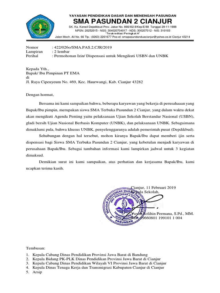 Contoh surat izin sekolah sma yang benar sebagai bahan referensi anda.